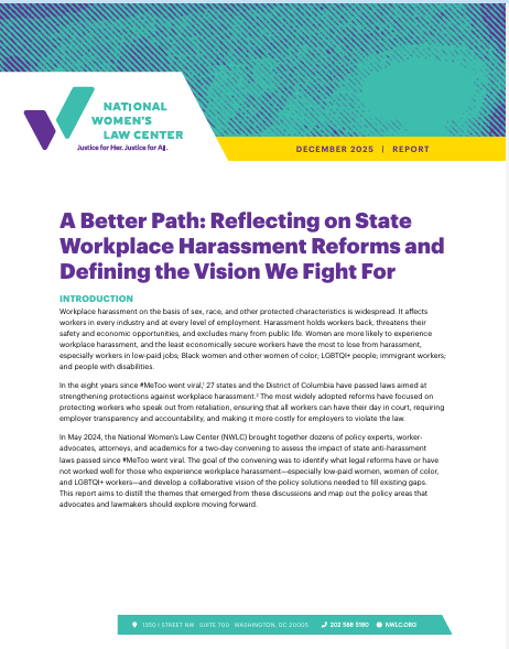 Following in-depth discussions with policy experts, worker advocates, attorneys, and academics to assess the impact of these laws and identify what legal reforms have or have not worked well for those who experience workplace harassment—especially low-paid women, women of color, and LGBTQI+ workers—this report presents a collaborative vision of the policy solutions needed to fill existing gaps.