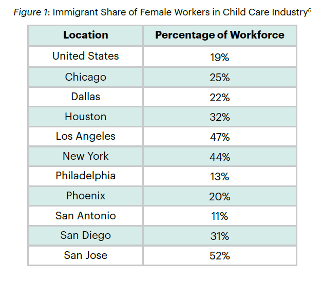 A 2022 study also found that immigrant women were a significant percentage of the child care workforce across the country.