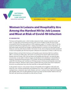 The leisure and hospitality sector—which includes restaurants, hotels, museums, spectator sports, and more—is a major driver of the American economy and a source of millions of jobs; this sector alone accounted for 9.4% of the entire workforce in 2018, employing roughly 1 in 11 workers in the U.S. But the spread of COVID-19 has ravaged this sector—making it the hardest-hit sector in terms of job losses—as both public health restrictions and changes in individual behavior to avoid the virus have limited travel, dining out, and many other leisure activities. And women of color, who are disproportionately represented in leisure and hospitality jobs that have long been underpaid and undervalued, are likely to suffer the most.